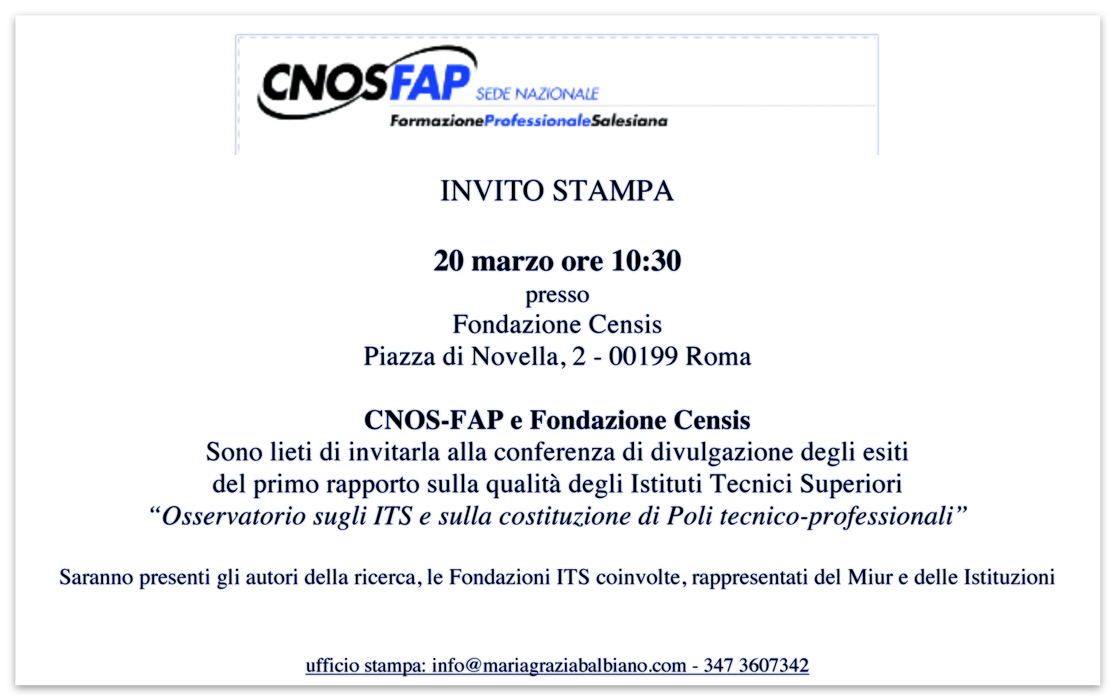 CNOS-FAP e FONDAZIONE CENSIS – Roma 20 marzo
